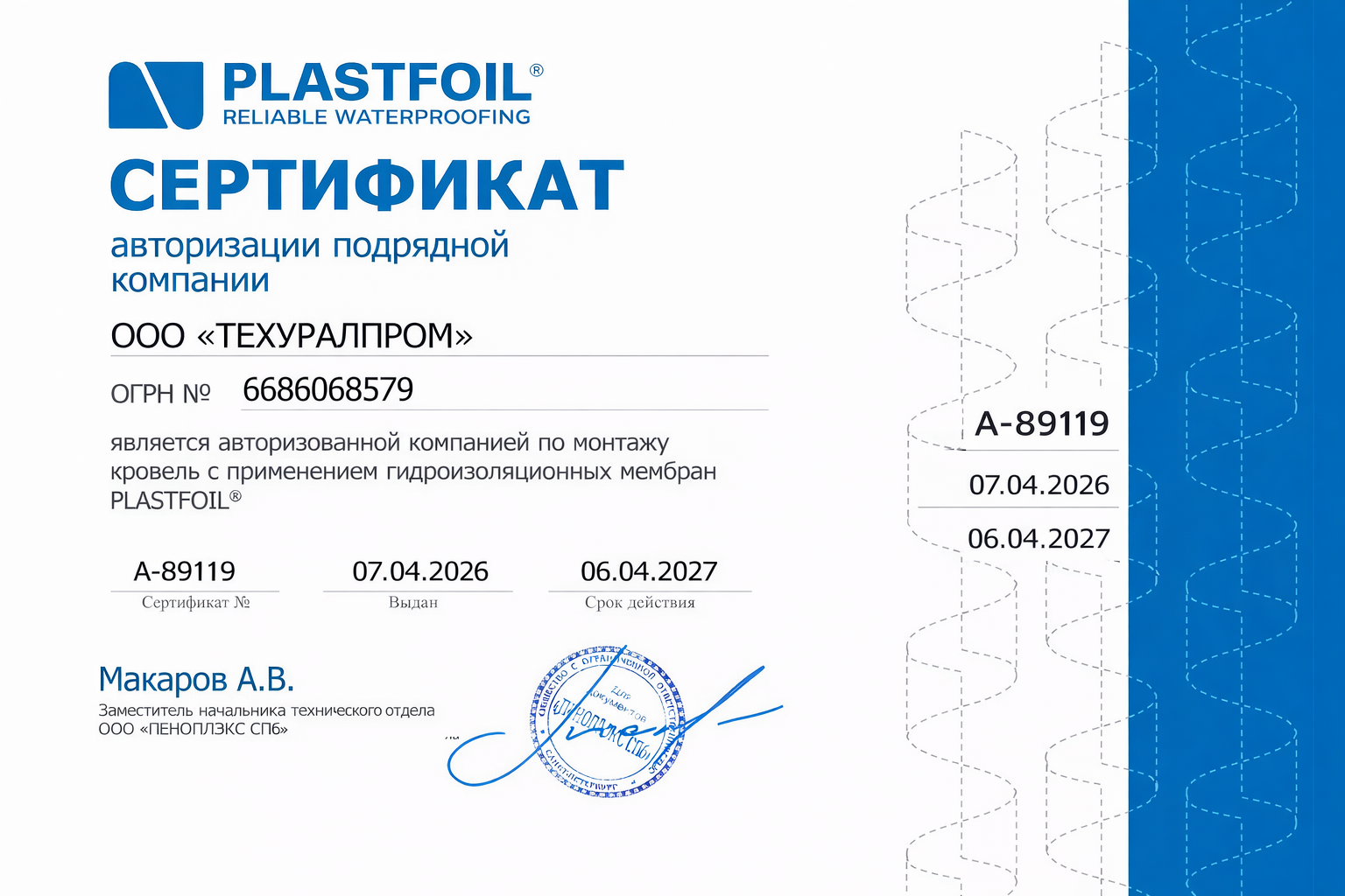 Каждый специалист компании прошел обучение и имеет удостоверение кровельщика 3 разряда по работе с рулонными и наплавляемыми материалами